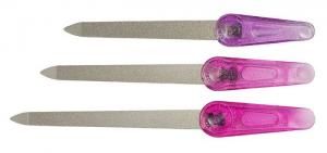 - Пилочка. Данное приспособление несёт максимальную функциональную нагрузку, и ему отведена главенствующая роль, ведь пилочка нужна не только при проведении маникюра, но и практически ежедневно. А различаются они между собой по материалу, пошедшему на их изготовление, и по абразивности, а форма у них преимущественно одинаковая. Пилки бывают педикюрными, для натуральных ногтей и для нарощенных.